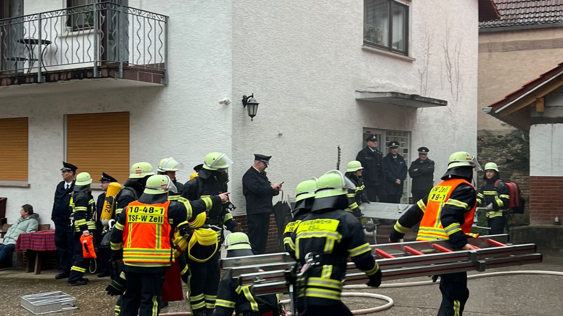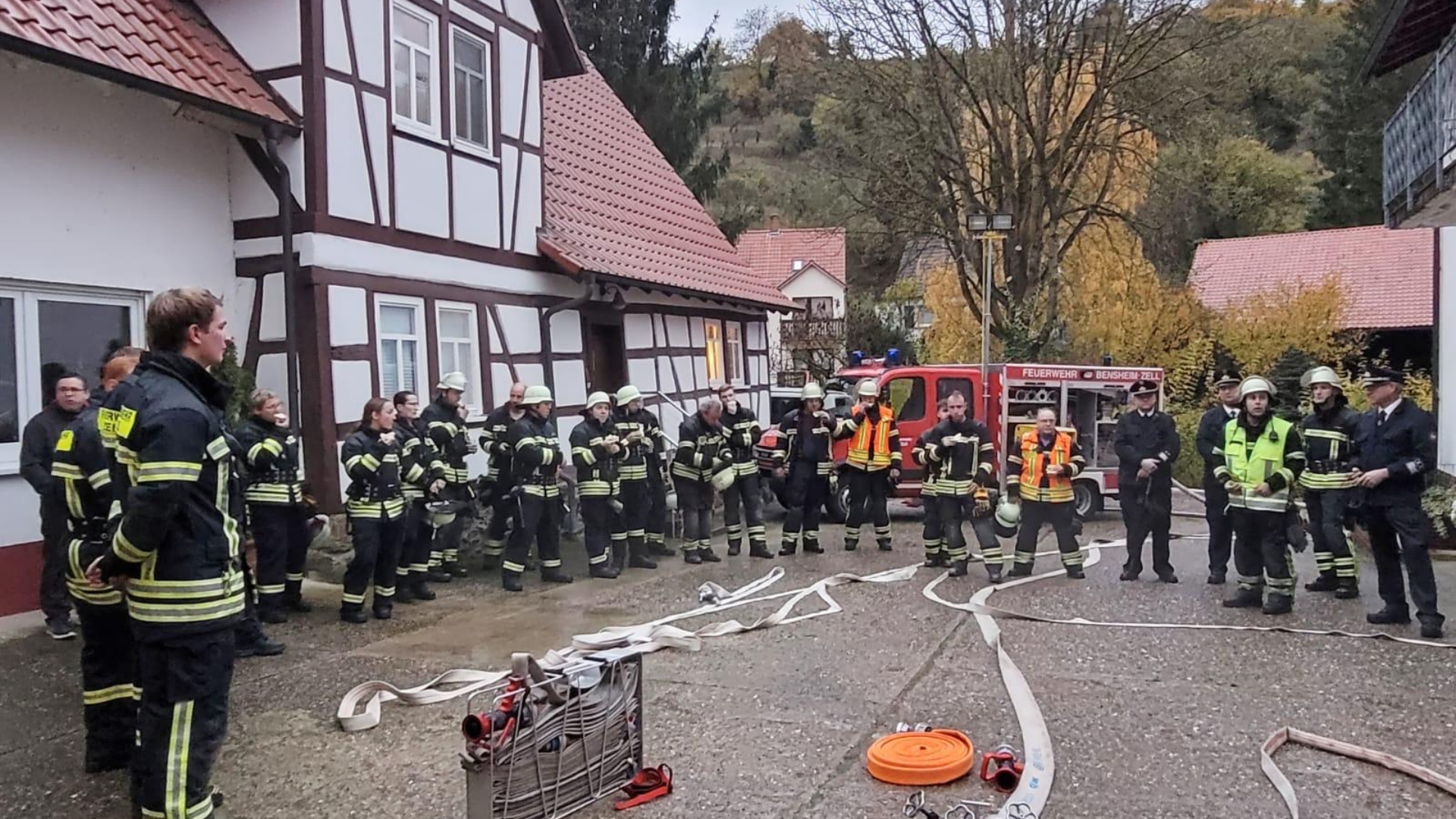 Fast hätte es die Einsatzabteilung der Zeller Feuerwehr nicht rechtzeitig zur eigenen Abschlussübung geschafft. Grund war eine zuvor eingegangene Alarmierung zu einem F1 Brand.