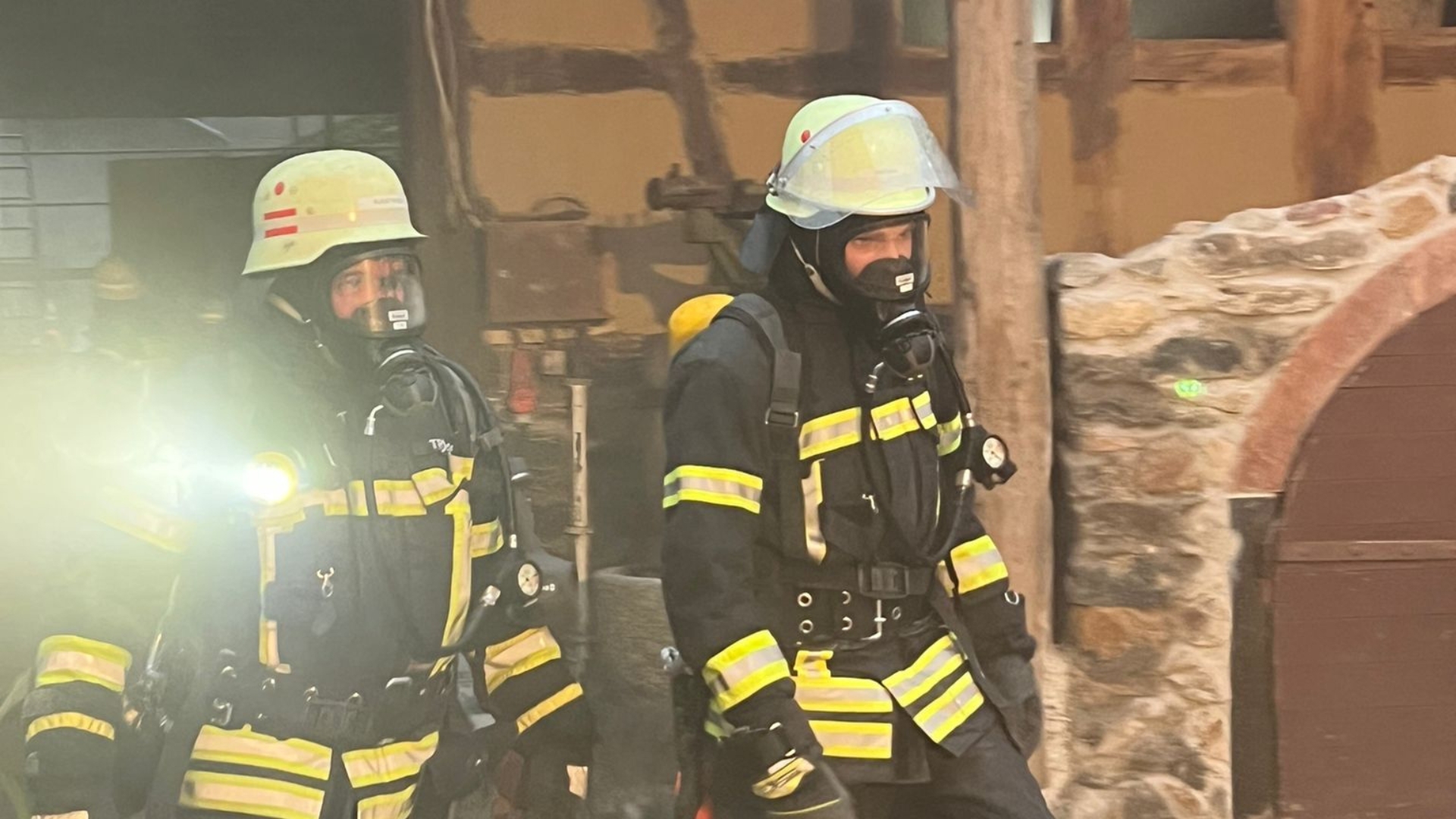 Schnell wurde die Wasserversorgung aus dem Hydrantennetz sichergestellt und die Angriffstrupps konnten zur Menschenrettung in das Gebäude vorrücken. 4 Personen konnten aus dem „brennenden“ Gebäude gerettet werden, während die übrigen 2 Personen über Leitern aus dem Haus gerettet wurden.
